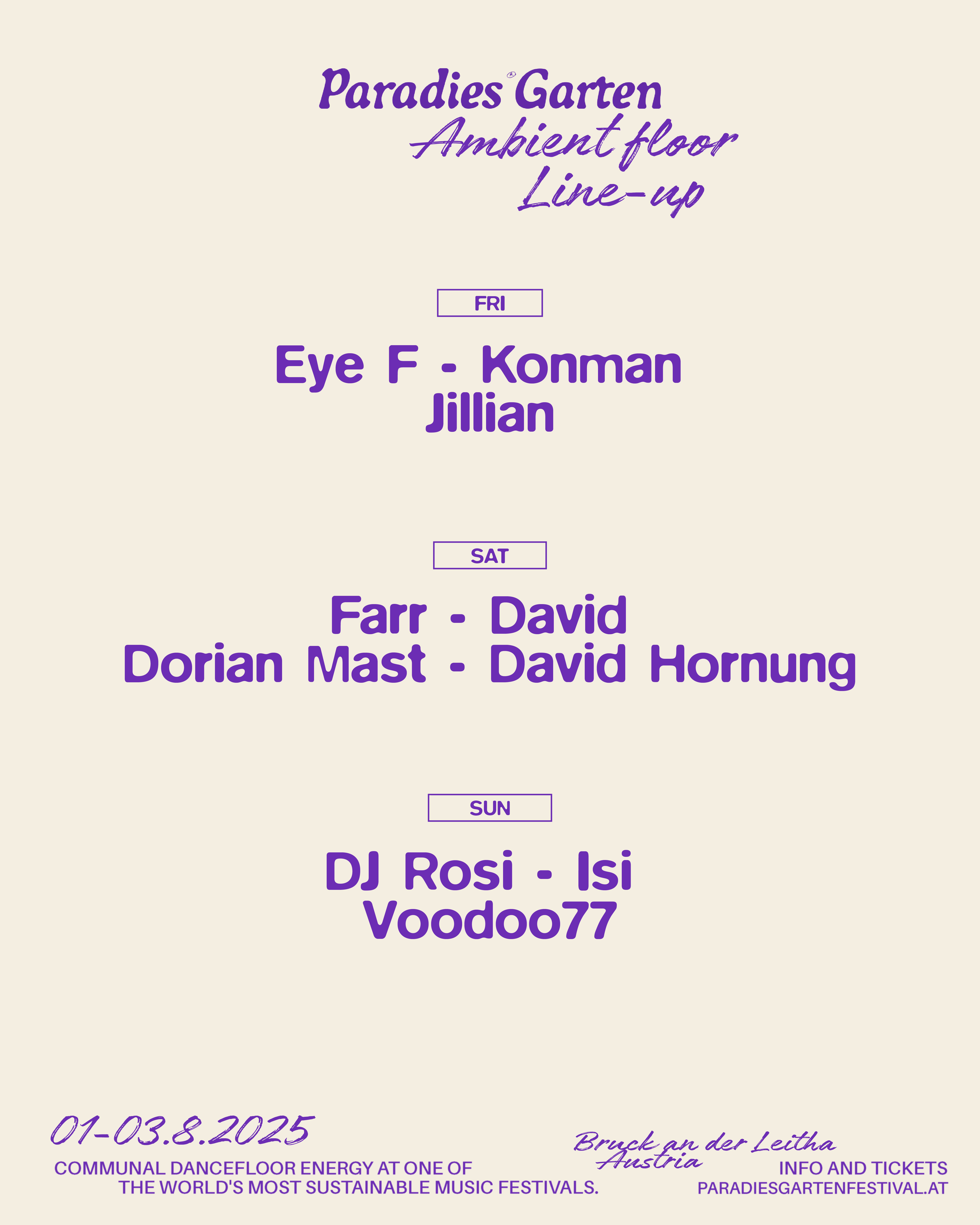Festivals can be intense, so it's essential to take a step back sometimes and catch your breath. Following last year's success, we're delighted to welcome Apartment Acht once again to curate a cosy lineup of local artists, who will treat you to a full range of ambient, chill-out, and downtempo sets, creating a relaxed community oasis for listening and lingering.
